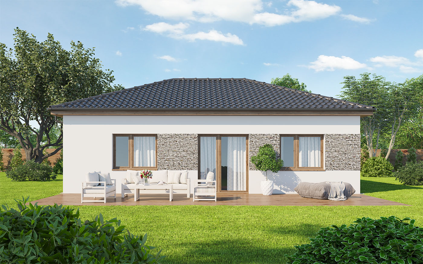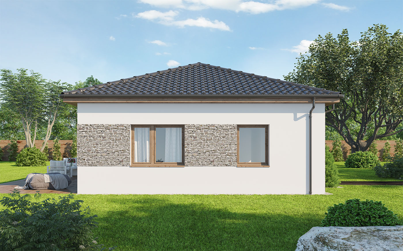Dom ten może być oferowany w dwóch wariantach – klasycznym z dachem czterospadowym oraz nowoczesnym z dachem dwuspadowym bez okapu.