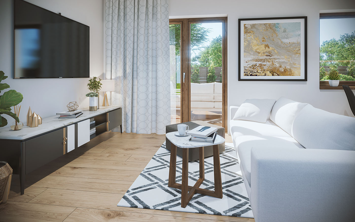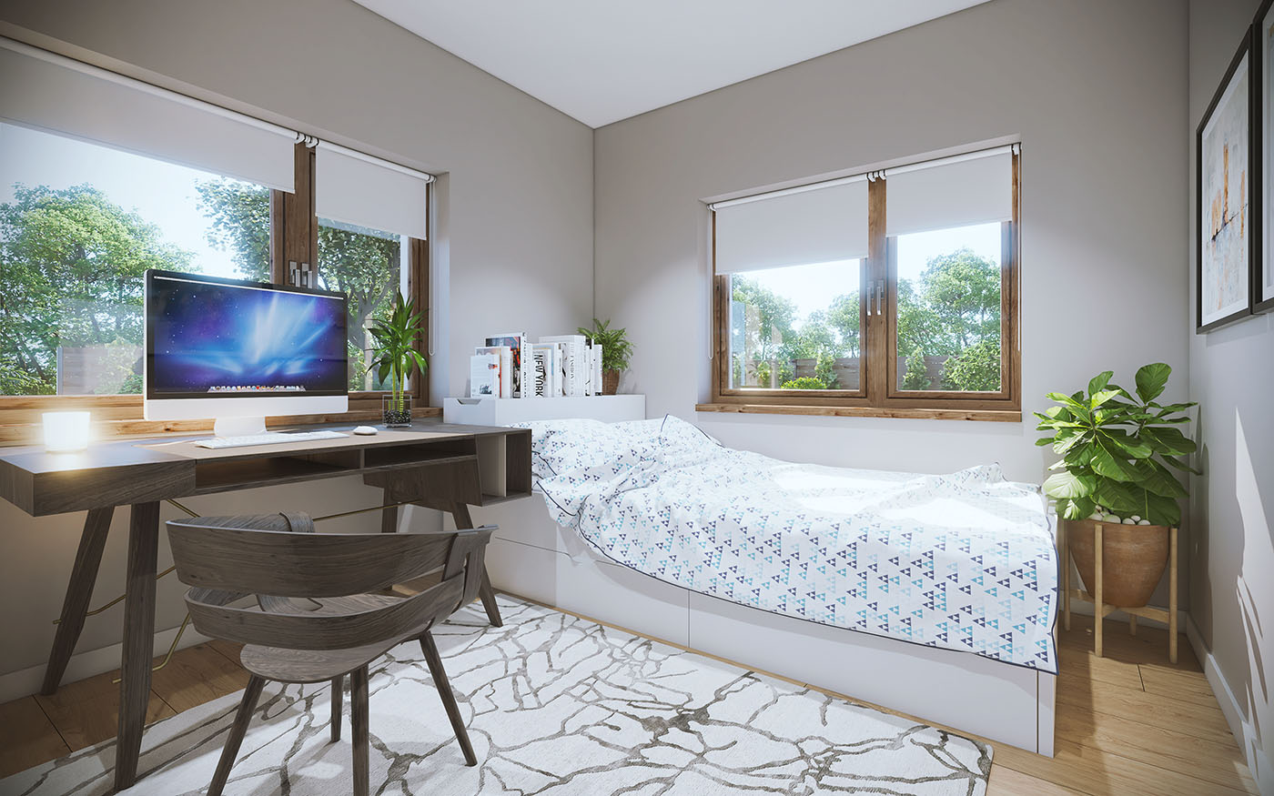 W domu prywatność sypialni rodziców i pokoju dziecięcego zapewnia odległość pomiędzy obydwoma pokojami.