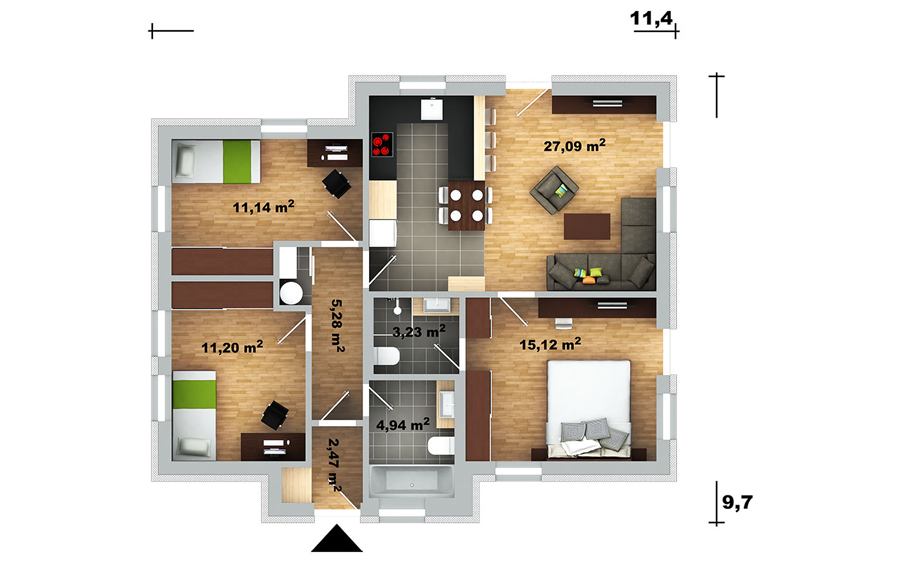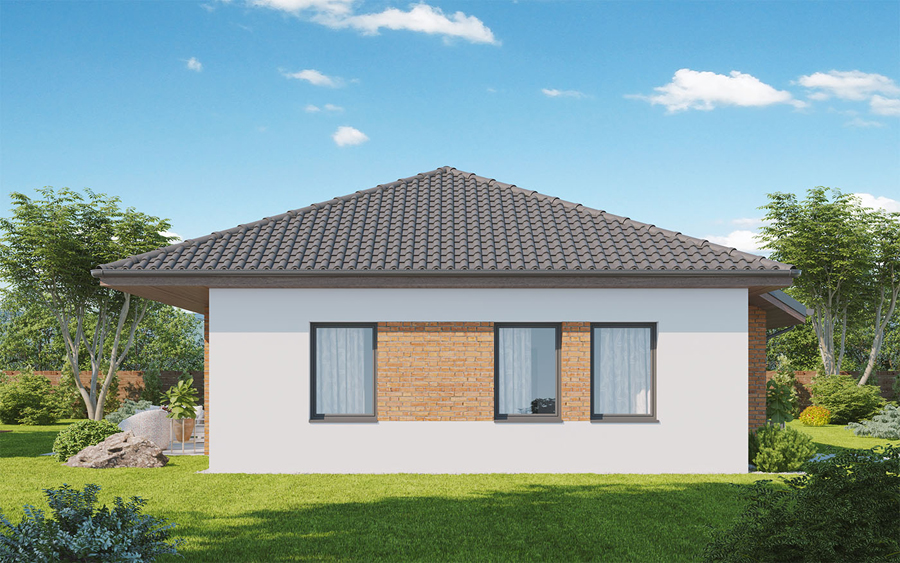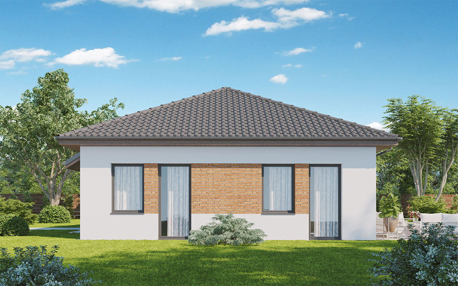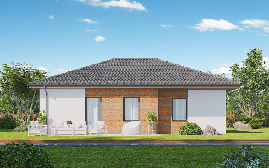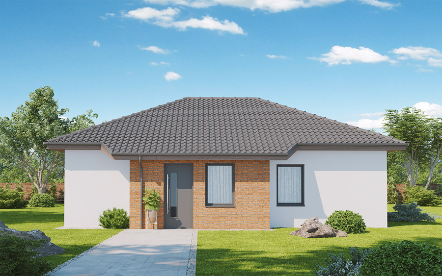 Parterowy dom o liczbie pokoi 4 i powierzchni zabudowy wynoszącej 79,26 m2 przeznaczony jest dla czteroosobowej rodziny.