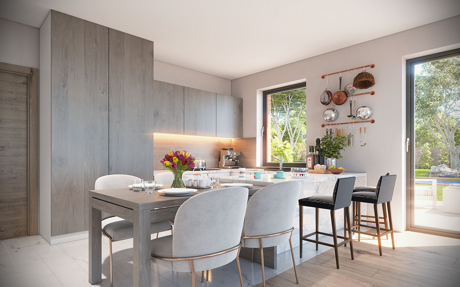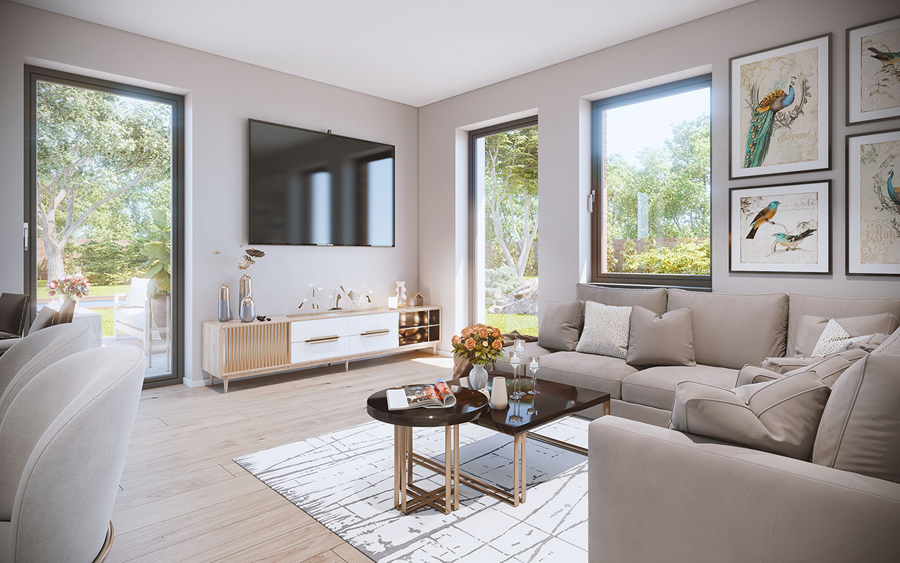 Projekt domu opiera się na idei wyeliminowania powierzchni komunikacyjnych i zachowaniu dostojnych stref funkcjonalnych (aktywnych i pasywnych).